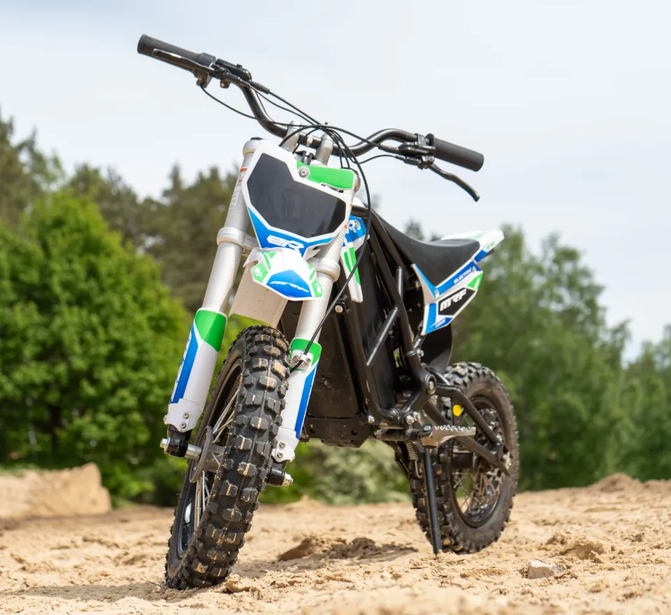 MRF eR 1.6 MX to elektryczny pit bike, stworzony z myślą o młodych motocyklistach oraz tych, którzy dopiero rozpoczynają swoją przygodę z jazdą terenową. Ten model łączy w sobie nowoczesną technologię, moc oraz łatwość obsługi, co czyni go idealnym wyborem dla początkujących. Jedno ładowanie baterii pozwala na przejechanie nawet 30 km trasy. Naukę jazdy mogą z nim zacząć dzieci od 8 roku życia.