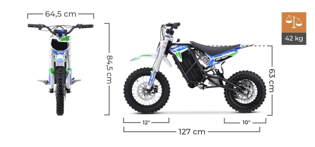 ✅ Możliwy jest montaż kół supermoto (po 12 lub po 10 cali), co pozwala na jazdę po torach i terenach asfaltowych.